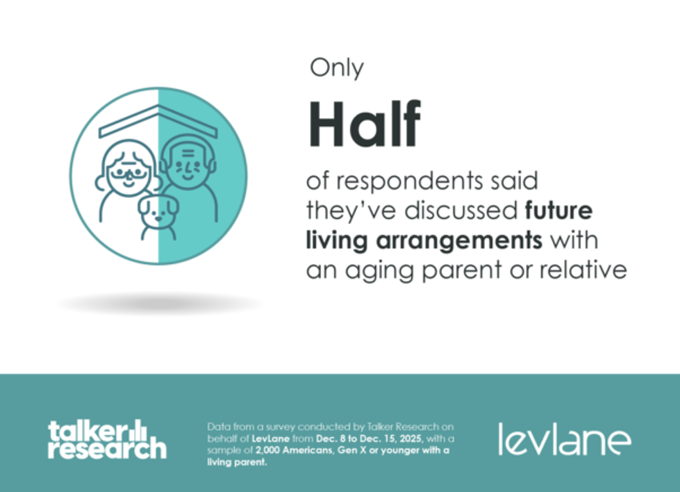 One in three adult children in the U.S. say that moving their parent(s) into their family’s home is the most likely living arrangement for their folks as they age, we hear from a study on the “Care Conversation” from LevLane, conducted by Talker Research.