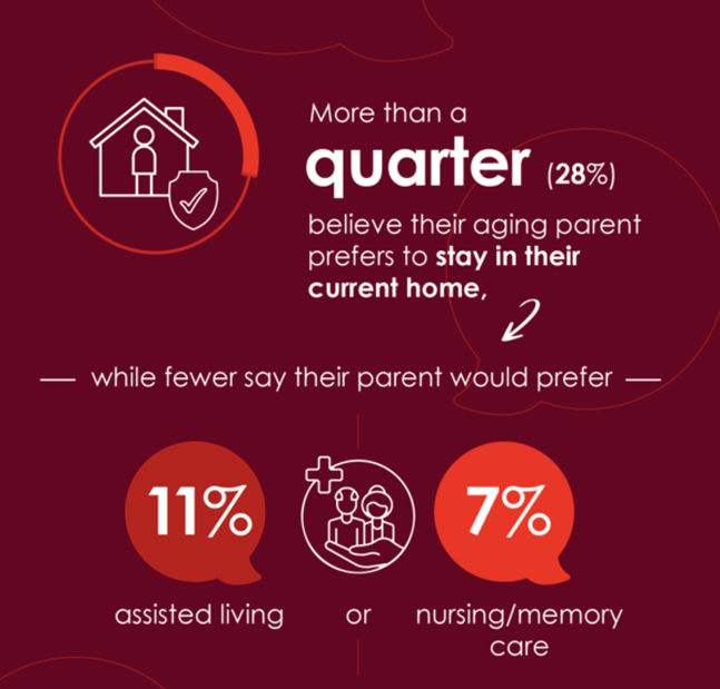 One-in-four adult children of aging parents believes their folks would prefer to stay in their homes.